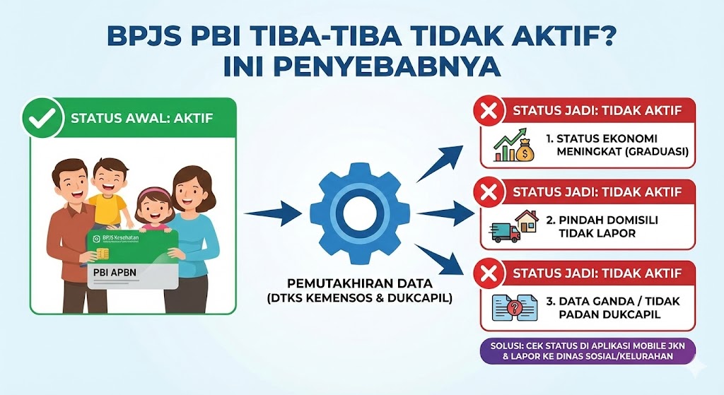 Masalah BPJS PBI tidak aktif mendadak ini sebenarnya bukan hal baru. Ada sejumlah faktor administratif dan kebijakan yang bisa menyebabkan kepesertaan dinonaktifkan sementara maupun permanen. Memahami penyebab dan cara mengatasinya menjadi langkah penting agar peserta tidak kehilangan hak layanan kesehatan.