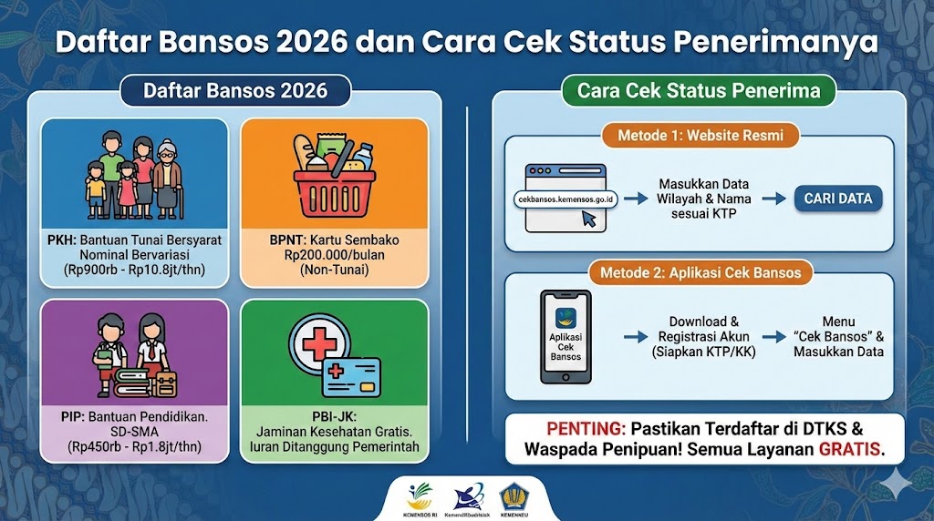 Berikut adalah rincian lengkap daftar Bansos 2026, nominal yang diterima, serta cara cek status kepesertaan Anda secara mandiri.