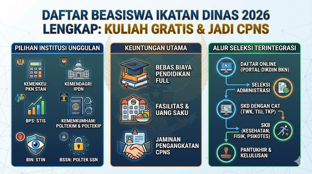 Memilih jalur ikatan dinas adalah investasi masa depan yang menjanjikan stabilitas tinggi. Dengan mengetahui daftar beasiswa ikatan dinas 2026 lengkap ini, Anda bisa menyusun strategi persiapan yang lebih matang. Fokuslah pada persiapan SKD dan jaga kondisi fisik agar tetap prima hingga hari seleksi tiba.