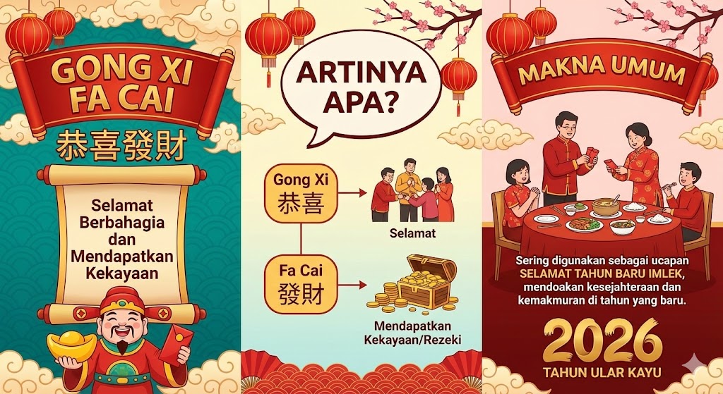 Himpasikom.id-Gong Xi Fa Cai artinya ucapan selamat dan doa agar memperoleh kemakmuran, kekayaan, serta keberuntungan, terutama digunakan saat perayaan Tahun Baru Imlek dalam budaya Tionghoa. Frasa ini berasal dari bahasa Mandarin yang sarat makna harapan positif.