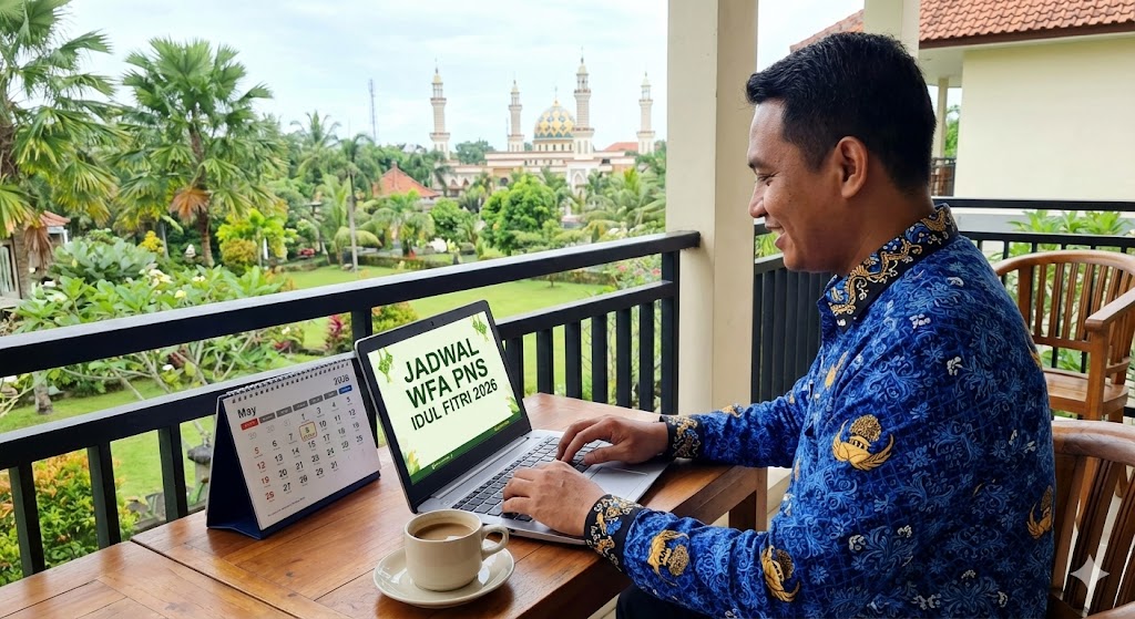 Pemerintah menetapkan kebijakan Work From Anywhere (WFA) bagi ASN selama libur Idul Fitri 2026 untuk mendukung kelancaran mudik dan menjaga produktivitas kerja. Jadwal WFA berlaku pada 16–17 Maret 2026 dan 25–27 Maret 2026. Kebijakan ini didukung oleh sistem kerja digital dan pengawasan instansi untuk memastikan pelayanan publik tetap berjalan optimal. Dengan kebijakan ini, ASN dapat bekerja secara fleksibel tanpa mengganggu pelayanan kepada masyarakat.