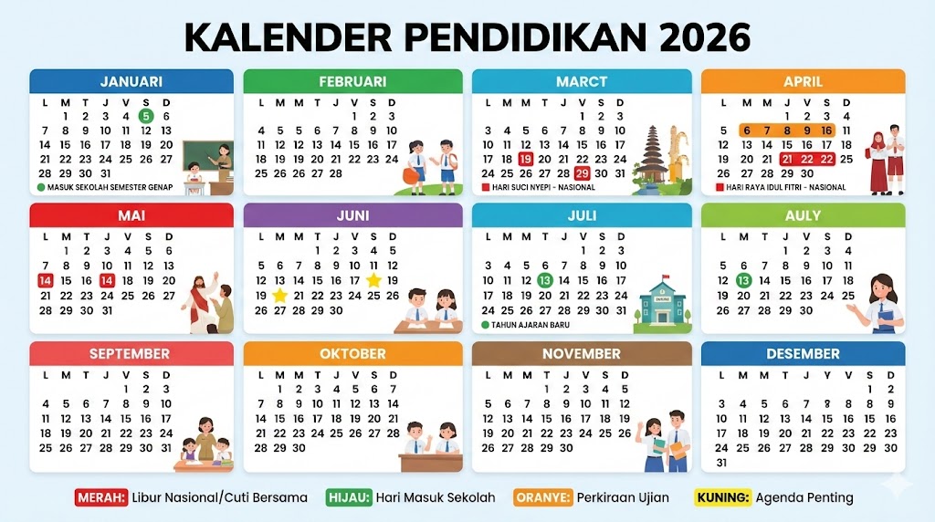 Artikel ini menyajikan rincian lengkap mengenai jadwal masuk sekolah, daftar hari libur nasional sesuai SKB 3 Menteri, hingga estimasi jadwal ujian penting. Simak panduan komprehensif ini agar Anda tidak melewatkan tanggal-tanggal penting sepanjang tahun 2026.