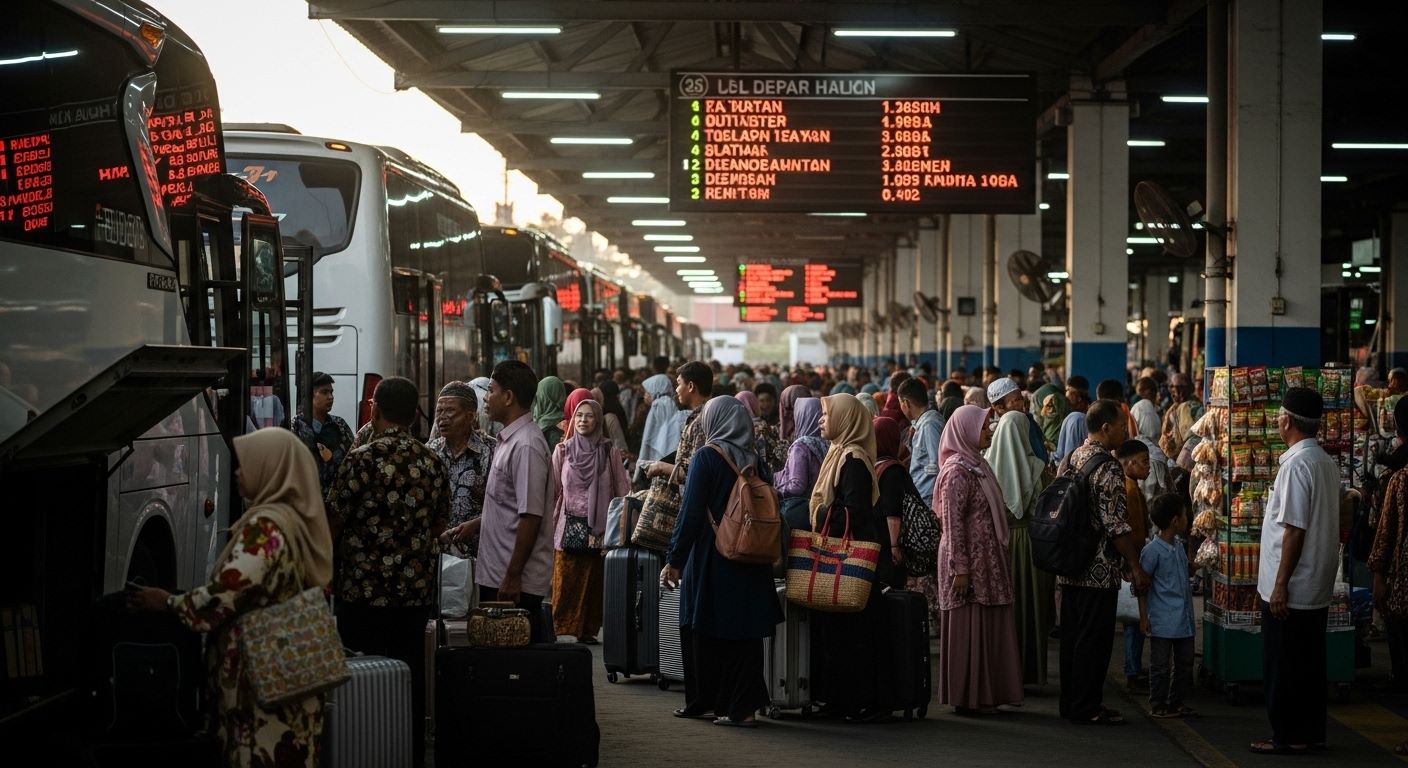 Moda bus menjadi pilihan utama bagi pemudik yang menuju kota-kota di Pulau Jawa dan Sumatera.