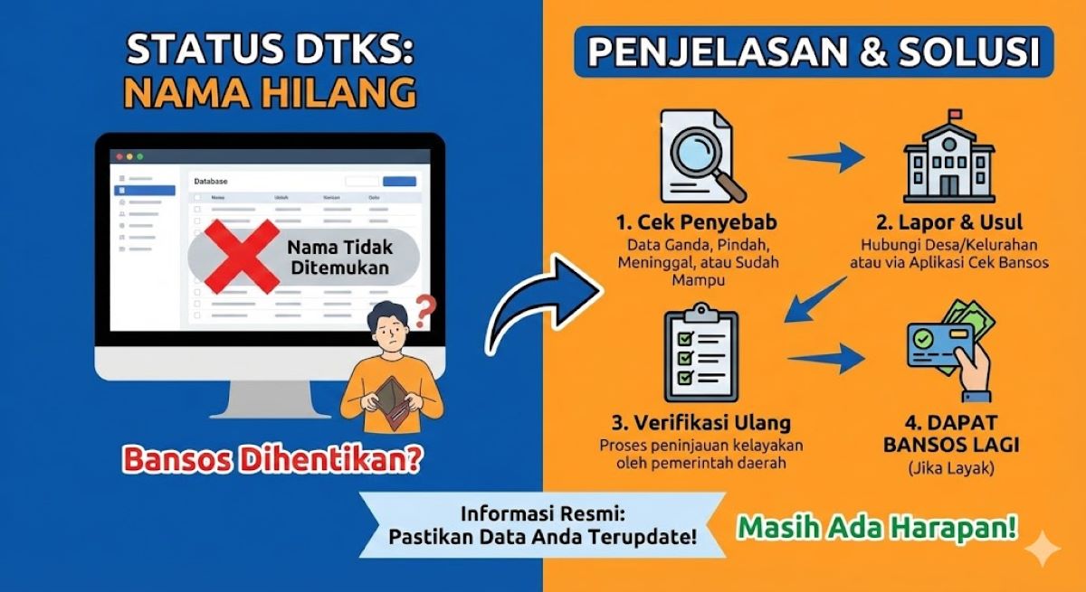 Nama hilang dari DTKS memang berdampak besar terhadap peluang menerima bansos, tetapi tidak selalu berarti tertutup sepenuhnya. Banyak faktor yang memengaruhi status DTKS, mulai dari pemutakhiran data hingga kesesuaian administrasi.