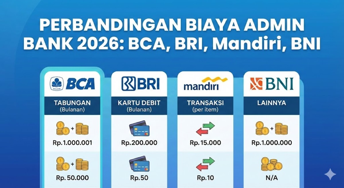 Perbandingan Biaya Admin Bank 2026: BCA, BRI, Mandiri, BNI