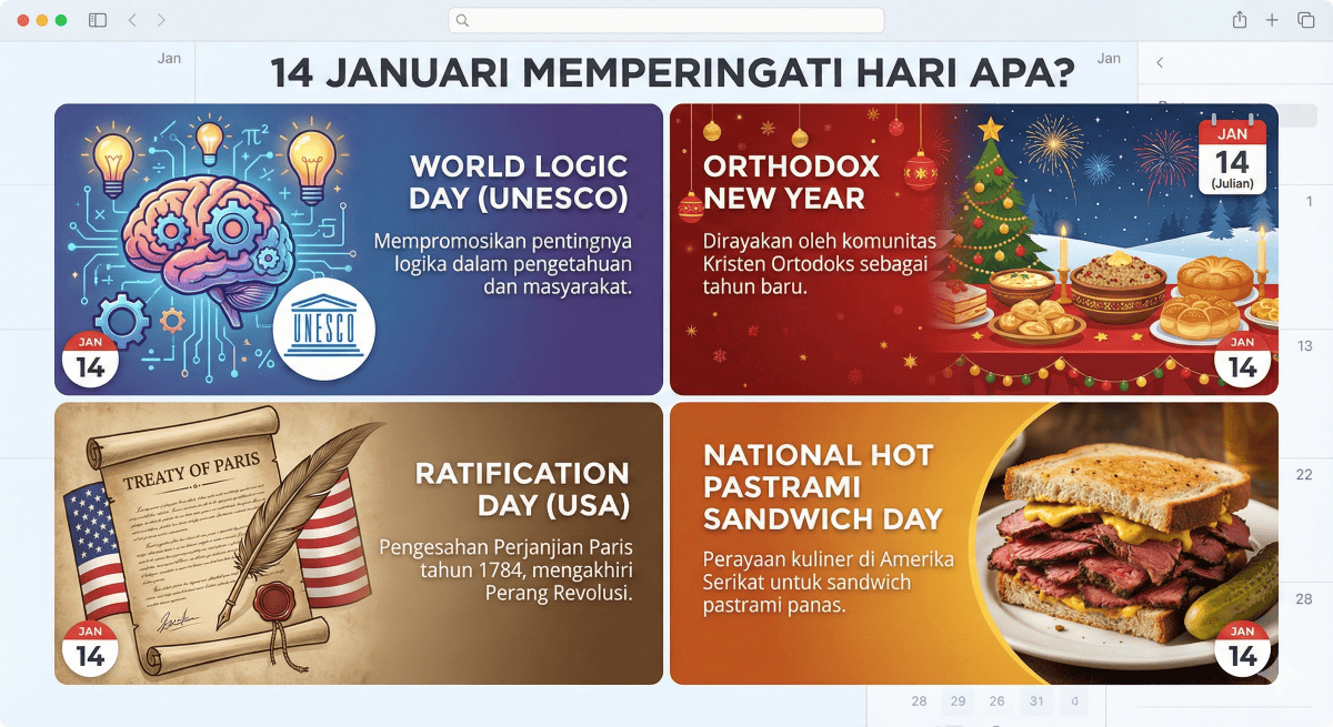 Tanggal 14 Januari bukan sekadar catatan di kalender. Ia adalah refleksi perjalanan manusia dalam berpikir, berkarya, dan menjaga kehidupan. Dari logika hingga budaya, dari tradisi hingga teknologi medis, semuanya bertemu dalam satu hari.